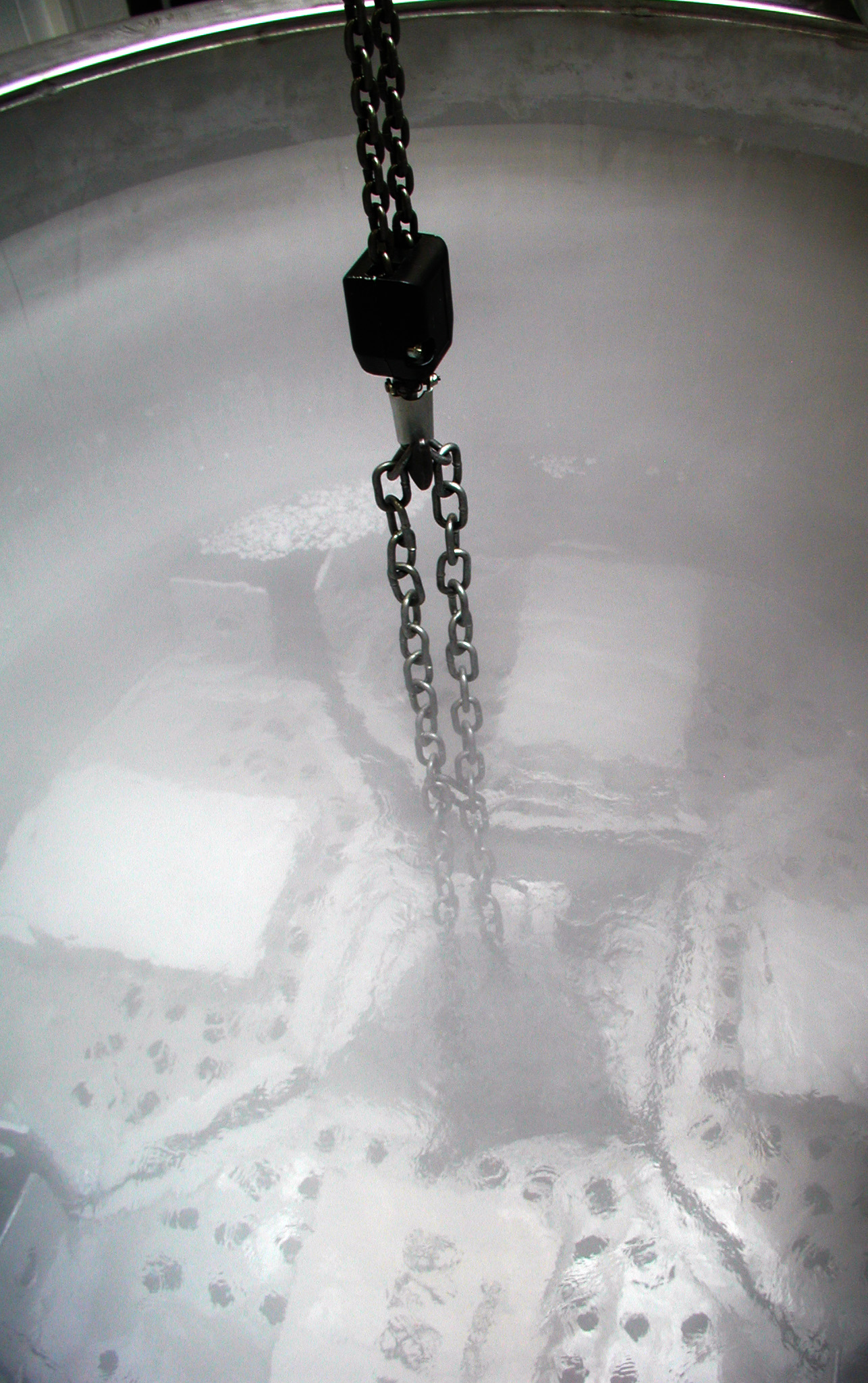 This “Bigfoot” Dewar is custom-designed to contain four wholebody patients and five neuropatients immersed in liquid nitrogen at -196 degrees Celsius. The Dewar is an insulated container which consumes no electric power. Liquid nitrogen is added periodically to replace the small amount that evaporates.